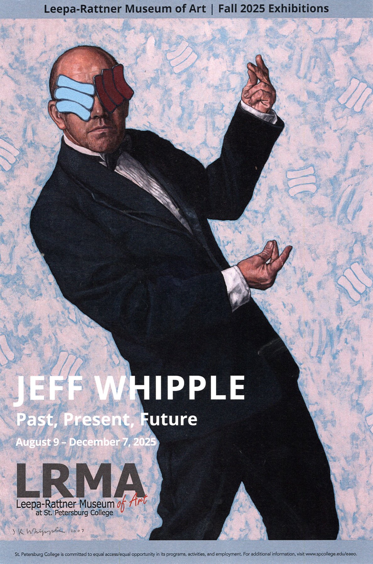 The Leepa-Rattner Museum of Art proudly presents Jeff Whipple: Past, Present, Future, a retrospective celebrating five decades of provocative, concept-driven work by Florida-based artist Jeff Whipple. Known for his signature three-line motif known as the “spanasm” and a razor-sharp wit, Whipple’s multidisciplinary practice spans painting, video, performance, and installation, exploring themes of mortality, identity, and the absurdity of modern life.